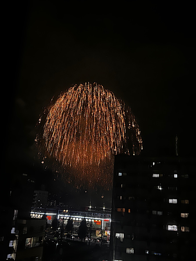 院内から見た花火の様子!!大迫力です。入所者様全員が見ることはできませんでしたが、後から花火の写真や動画を楽しんだそうです。音がすごかったと次の日教えてくれました🎆