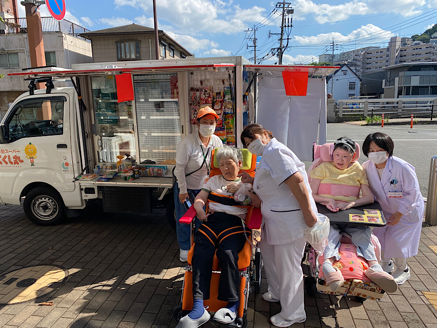 このとくし丸号はお菓子や飲み物、生鮮食品、日用品など色々な物がありとても便利な移動スーパーです!玄関前まで来てくれるので、入所者様が実際に見て選んで購入できます。当日になかったものは、予約をして次の週には持ってきていただけるので、とても助かっています。