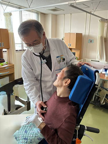 入所者様一人一人を丁寧に診察し、健康状態をしっかりチェックしてくれます。皆の健康管理おまかせください(^^)