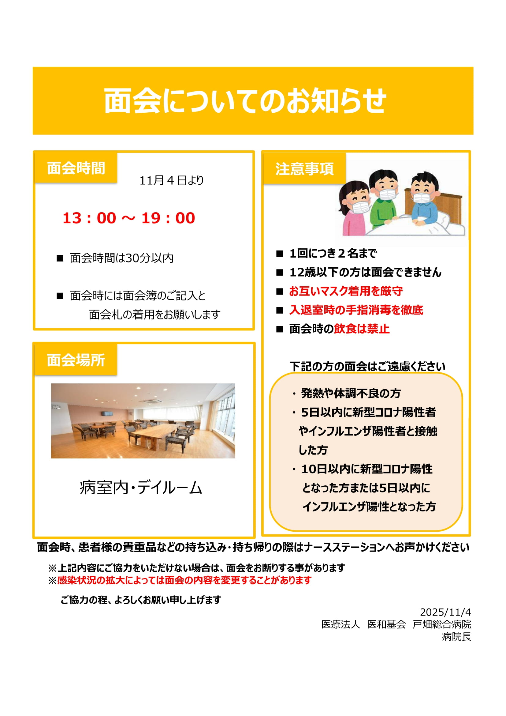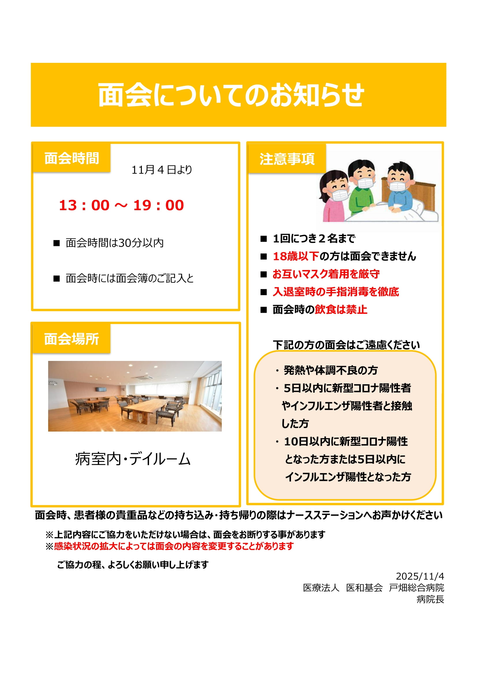 ※市内の感染状況の拡大によっては面会制限の内容を変更することがあります。